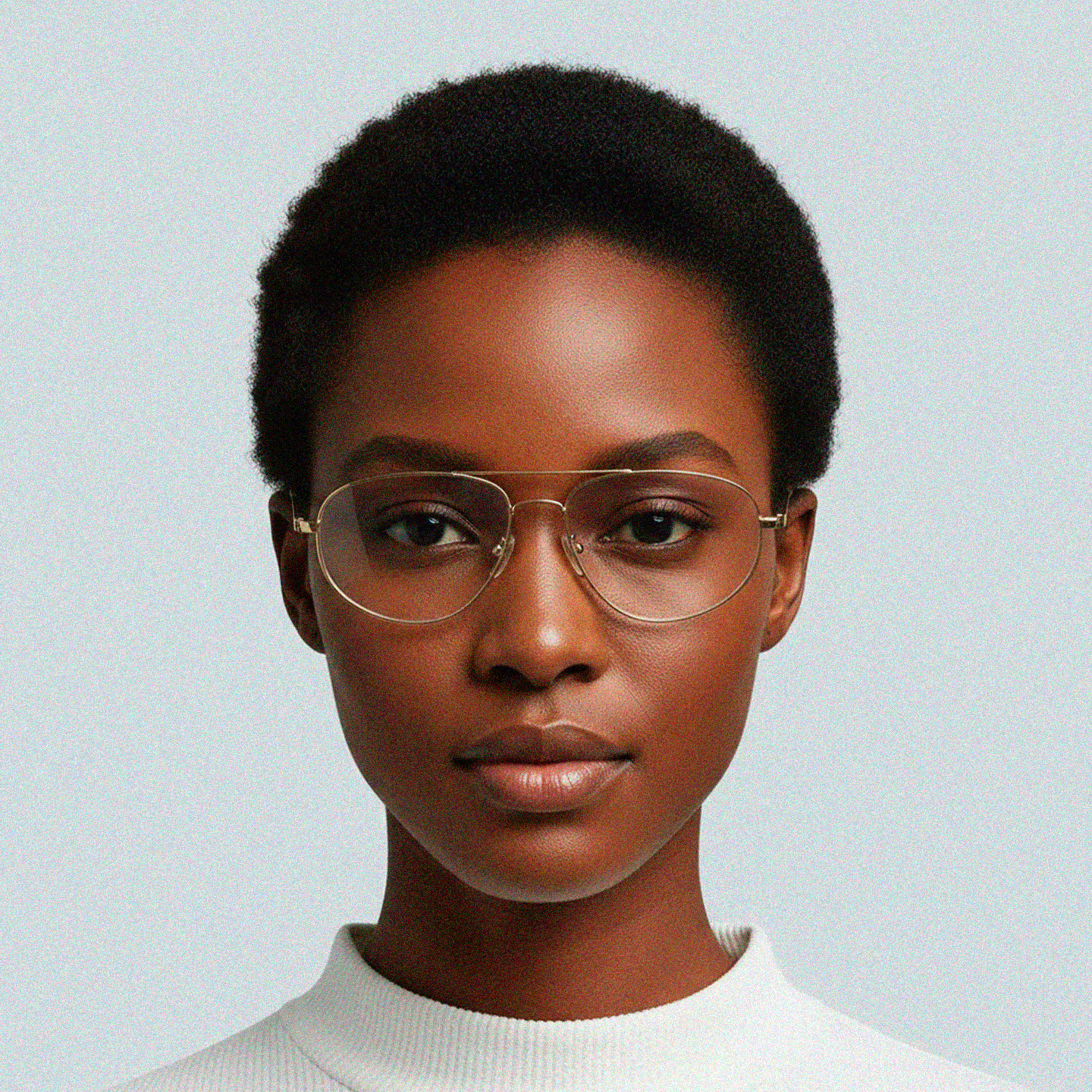 Glasses that work well: frames with details or visual weight in the upper portion — like aviators — help balance proportions and emphasize your best features.